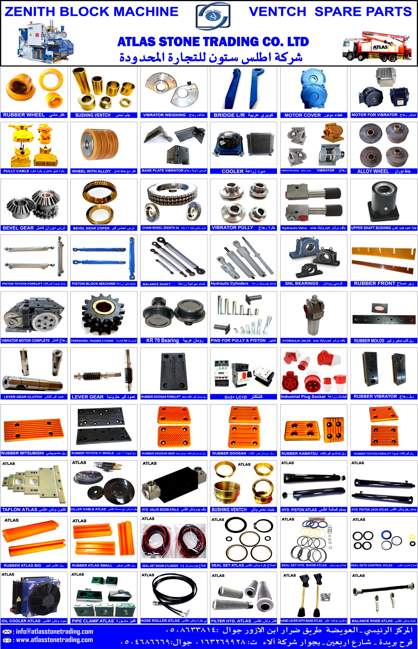 Zenith Block Machine Parts قطع غيار مصانع البلوك و اطلس كرين